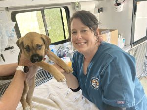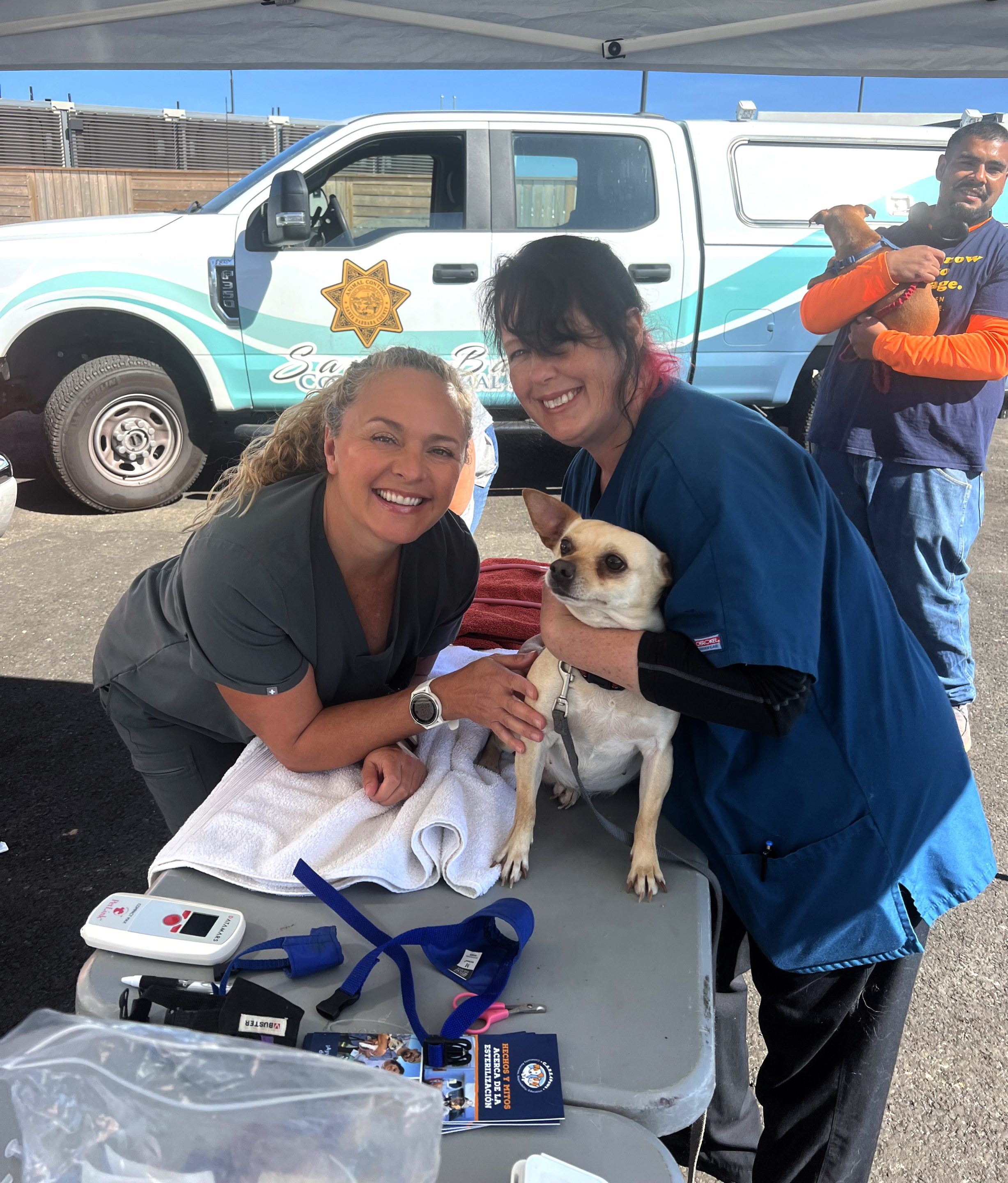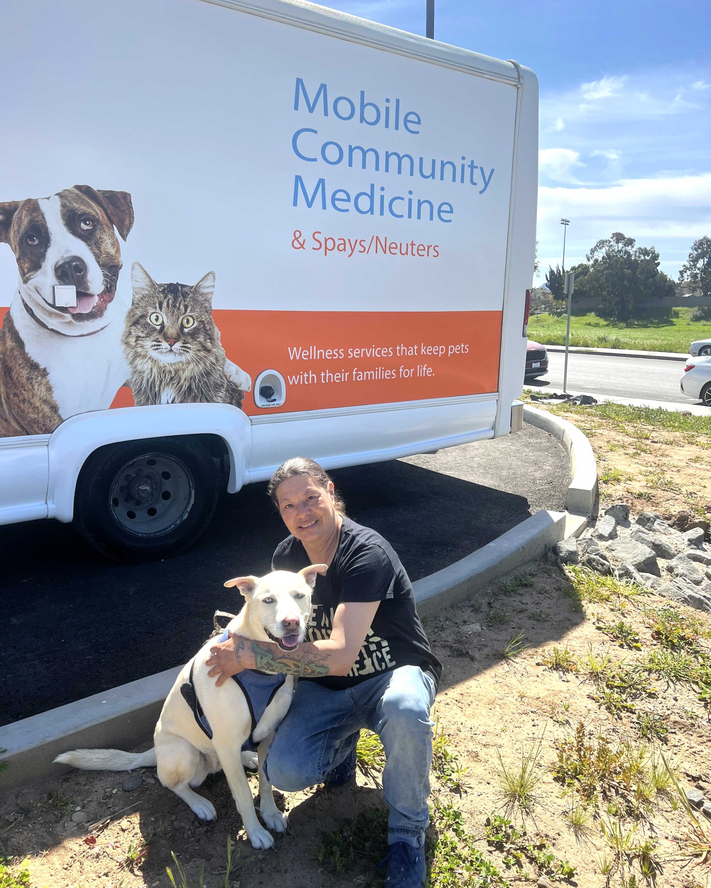 Since August 2024, C.A.R.E.4Paws has done outreach in the Santa Maria riverbed to assist pet families affected by undergoing clearings, which are happening in riverbeds across California. In addition to Good Samaritan Shelter, we collaborate closely with 5Cities Homeless Coalition and Community Action Partnership of San Luis Obispo County (CAPSLO). C.A.R.E.4Paws volunteers and partner agency staff teams have worked tirelessly to locate families to ensure they have the support they need. We distribute pet food, water and supplies and bring our mobile units out regularly to provide spays/neuters, vaccines, microchips and other veterinary care.