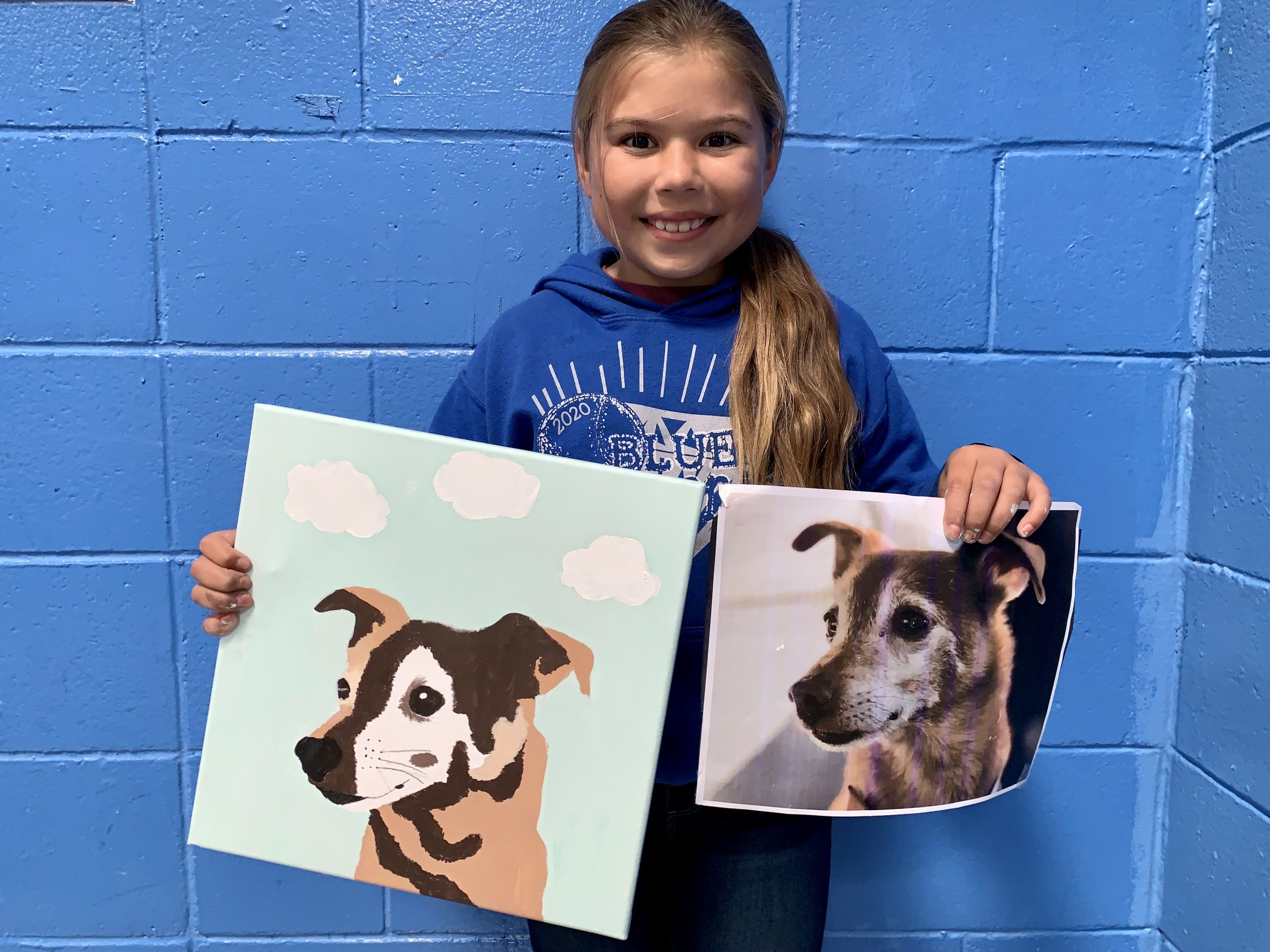 girl with painting of a pet