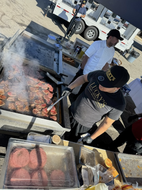 Lucky’s on Coast Village Road went to the Critical Command center for firefighters at Malibu’s Zuma Beach – the main camp for firefighters from all over the state and country – and worked their Lucky’s magic. “We cooked for over 600 firefighters,” says Larry Nobles, Director of Operations at Lucky’s. “It was myself and Lucky’s Malibu Executive Chef Marco Bello, Lucky’s Montecito Executive Chef Rene Gonzalez, and three other guys. We are hoping to be able to cook again this week for the community and for the firefighters in front of Lucky’s Malibu, and to be a place where the community can gather.” Okay … how?!